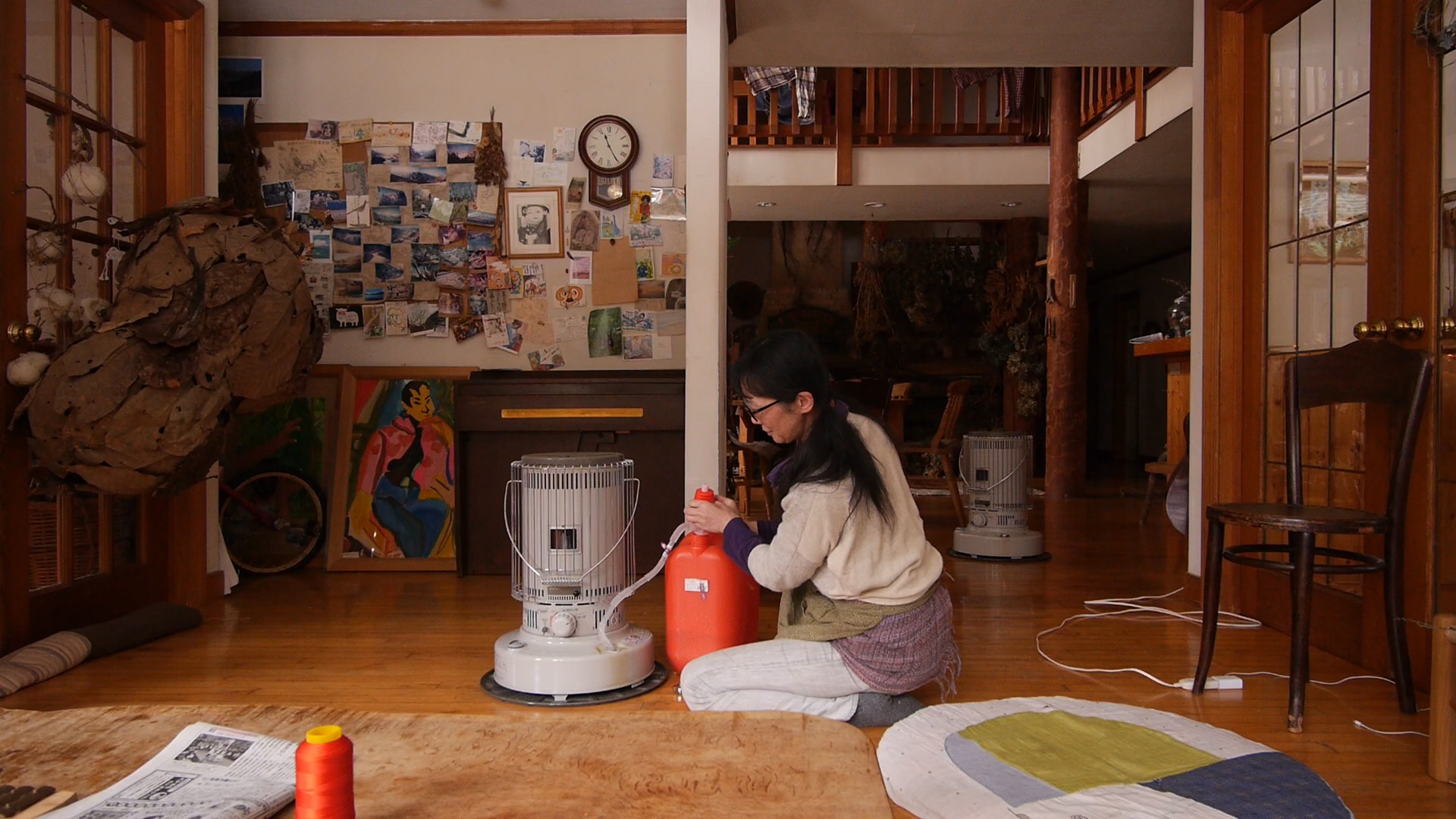 ジョリーンに初めてあった時、僕は一目で彼女の聡明でハッピーな性格が好きになった。彼女は大町に到着した翌日、あめ市で素敵な家族と出会い、それをきっかけに映像作品「家を守る」をつくりはじめる。彼女の撮影に同伴して話しているうちに、アートはコミュニケーションである、という事を改めて感じた。彼女の作品には大町に住む家族と彼女自身のリアルな関係性が表れている。親が子供を見る優しい視線や、何度も繰り返された夫婦の共同作業から家族の暖かさを感じるのは、その瞬間を撮影し、作品として編集する彼女の愛情が表れているのだ。映像の最初に松葉屋の中村保子さんが障子戸をすーっと開けた時に感じた長い月日と、最後に奏和ちゃんが立て付けの悪い障子戸をがんばって開ける風景が重なって、人が生きることの大きな循環を感じた。そして「家を守る」を観終わった時、そこに映しだされた家族の何気ない日常風景が、出会いや別れや決意や諦めなどを含んだ沢山の奇跡に支えられている気がして、なんだかとても嬉しくなった。